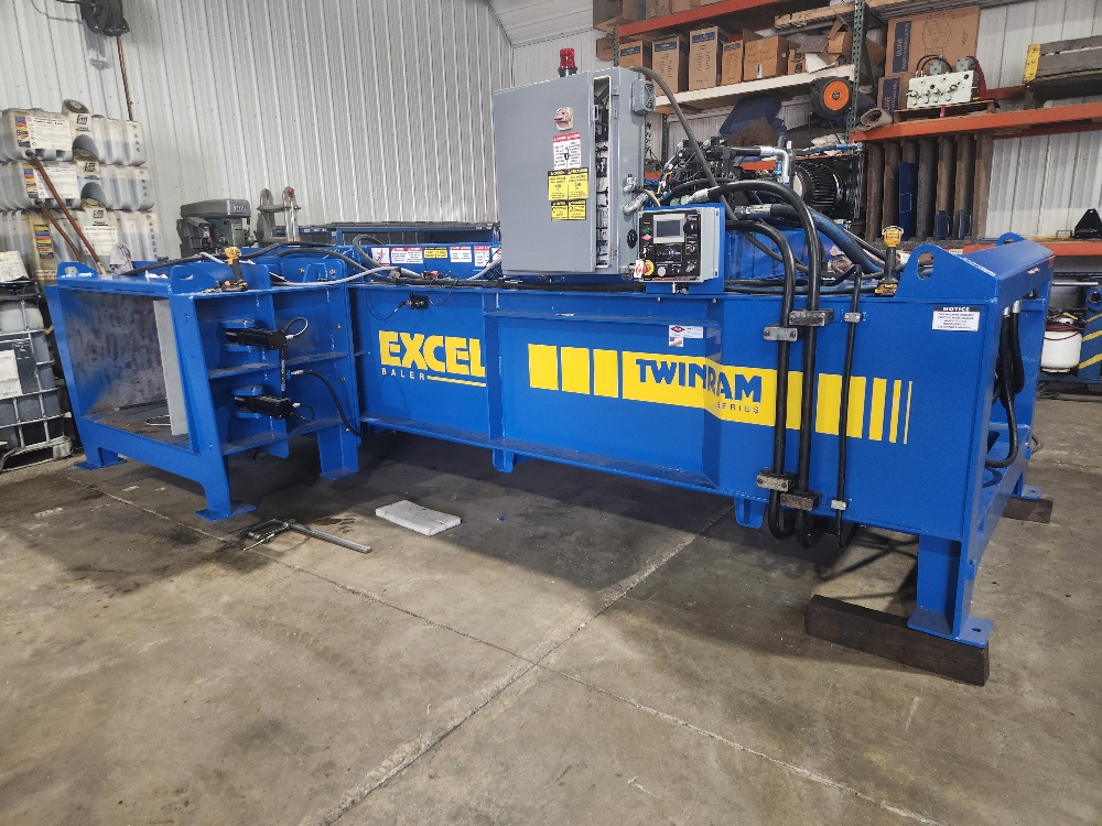 Excel Model EX62 - Factory Rebuilt. Bales corrugated, paper, plastics, cans, clothing, and more.